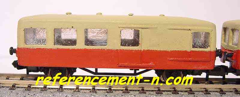 châssis Modèles livrés en kit à monter, 5 pièces pour le chaudron, 1 pour le châssis, essieux et attelage en métal Un essieu suspendu XR-9100 : remorque sans toilettes XR-9500 : remorque avec toilettes Modèles dessiné par Régis Grannec Ces remorques ont existé avec toit crème ou toit rouge Présentation dans Magaz'N N° 144 en 2015 et janvier 2018, buletins de l'AFAN Présentation d" l'impression 3D du modèle dans Loco Revue N° 801 de février 2014 Historique du modèle réel : |