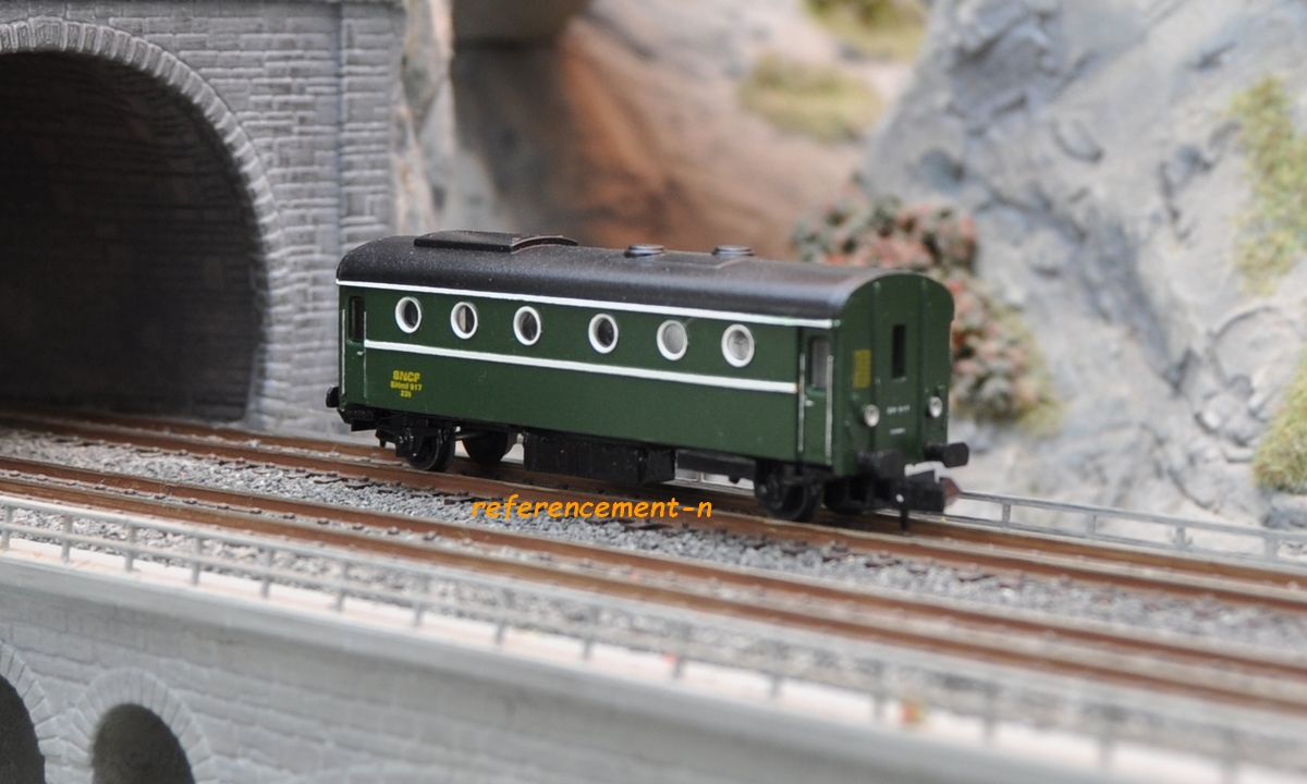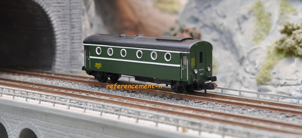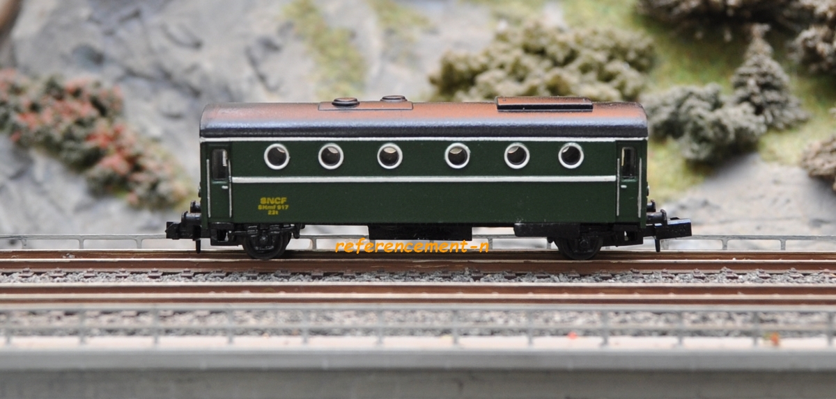 Livrée brun foncé et toit noir Wagon réalisé antérieurement à la sortie du modèle Arnold référencé 4497 en 1994 |