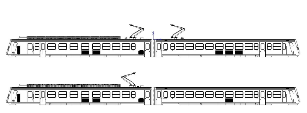 composé de deux motrices identiques avec deux simples portes passagers et