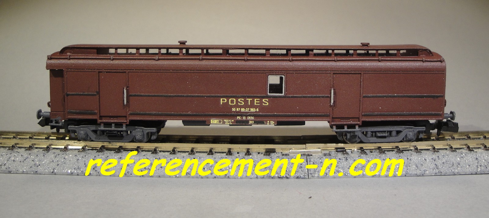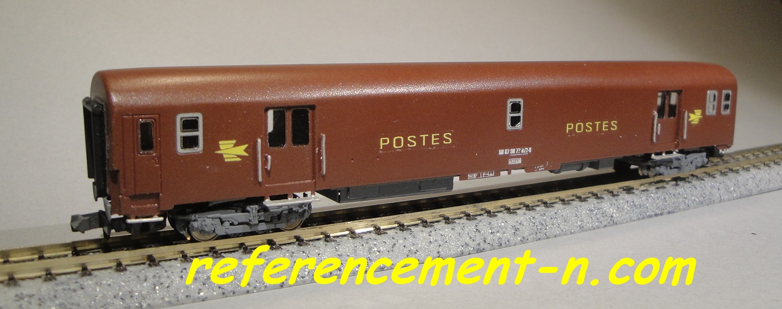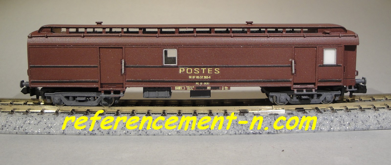 été construits en 1974 par les Etablisements Soulé de Bagnières-de-Bigorre. Voiture de longueur identique aux type X de l'UIC Voiture réalisée en laiton photogravée Logo Poste jaune de 1974 Marquages UIC jaunes A été aussi réalisée en livrée modernisée jaune et blanche |