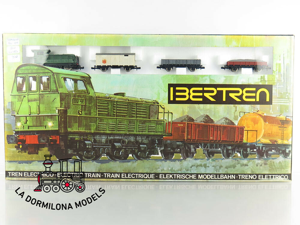 Description | Locomotive diesel verte et 4 wagons marchandises | |