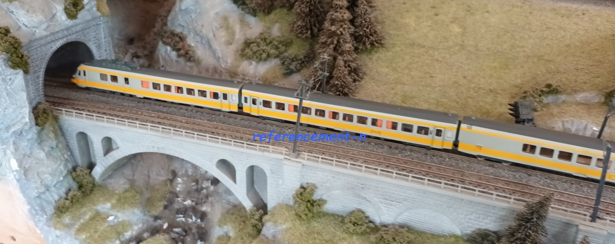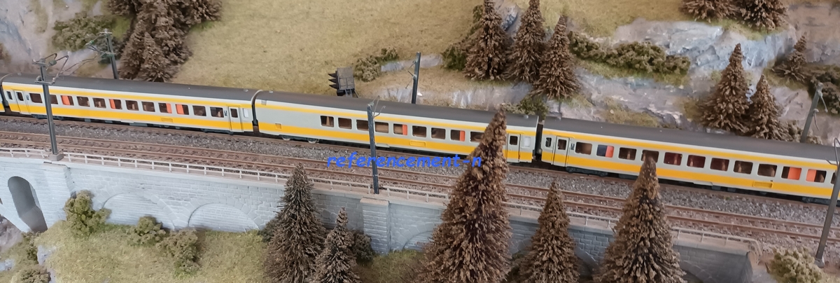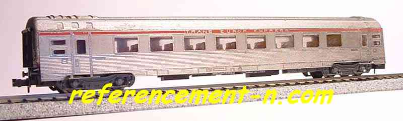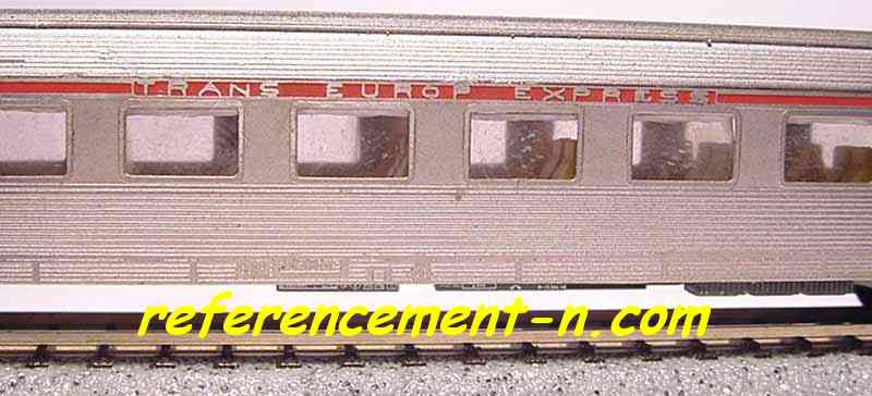 Fleischmann en option Longueur : 160 mm Présentation Rail Miniature Flash N° 339 de octobre 1992 Présentation Loco Revue N°552 de octobre 1992 Annonce Le Train N° 51 de juillet 1992 Présentation Le Train N° 55 de novembre 1992 Proposée à l'unité à la vente ou par coffret de 6 voitures : 3 1.Cl., une mixte générateur, un restaurant, un bar et une plaque frontale pour la locomotive Modèle de l'année 1992 FFMF/AFAN |