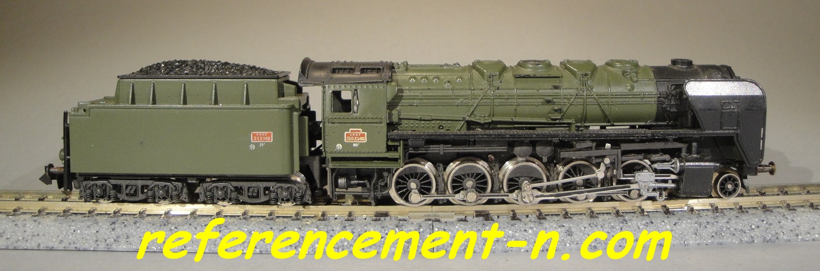 référence : 02106F Ancienne référence : 23209F Numérotation identique au modèle suivant Métal moulé sauf tender en plastique Moteur dans le tender entraînant les essieux de la locomotive Longueur : 143 mm Annonce dans Loco Revue N° 452 de septembre 1983 Présentation dans Rail Miniature Flash N° 238 de juillet/août 1983 Historique du modèle réel |