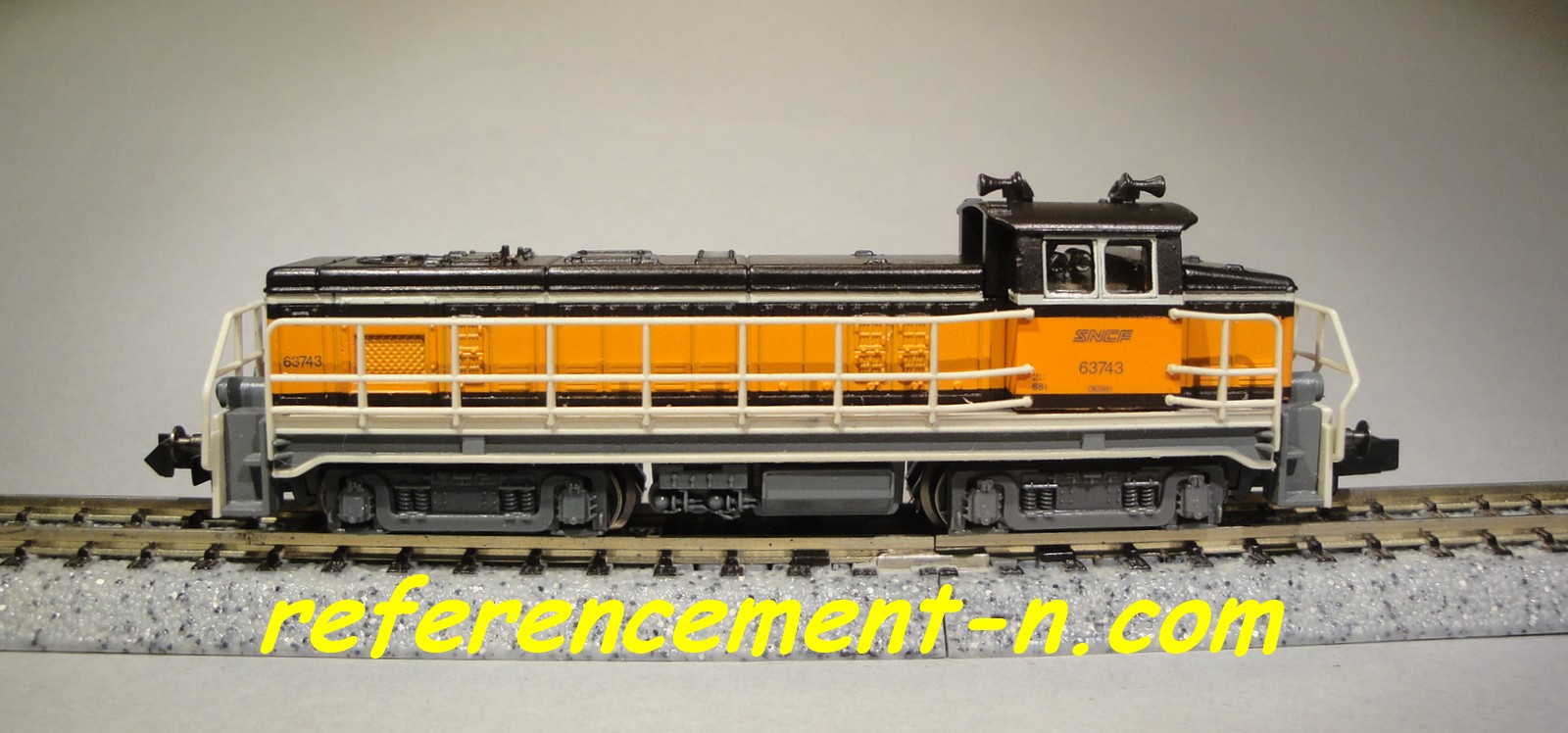 | Description | Locomotive type BB 63000 livrée Arzens orange grise et blanche | |