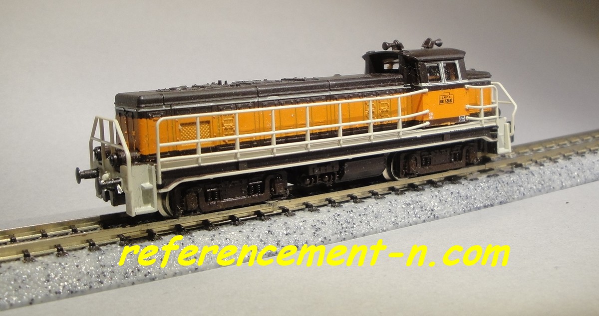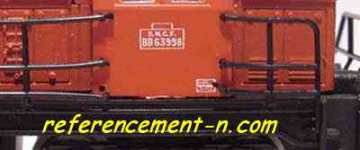 et de nouveau châssis et en plus avec des rambardes noires ou blanches C'est un modèle avec 3ème feux central de chaque côte alors qu'il n'en a jamais eu en France. Ancien logo marquage blanc sur fond orange Elle n'a été vendue qu'en coffret avec trois wagons de marchandises allemands Longueur : 91 mm Historique du modèle réel |