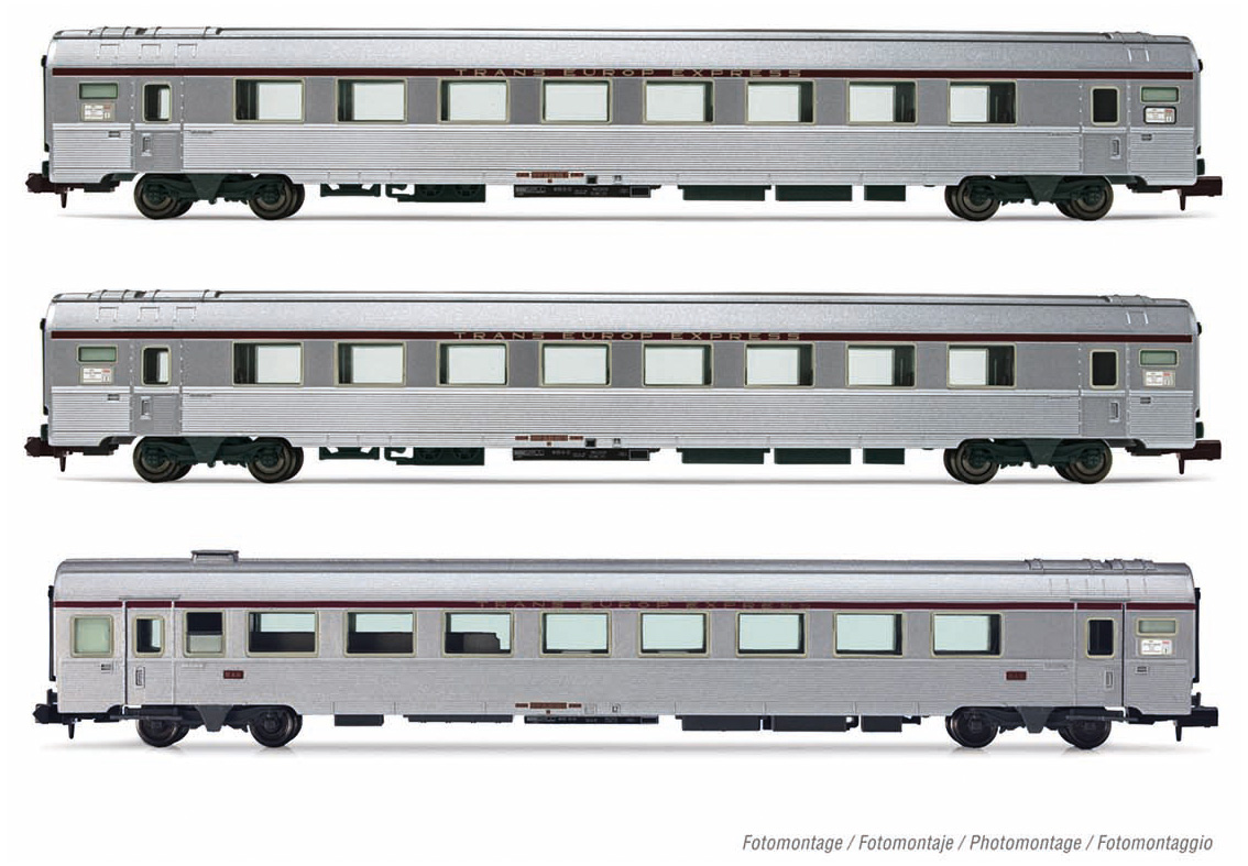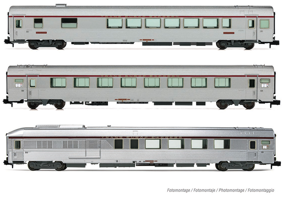 Couleur inox Bande rouge au dessus des fenêtres avec marquage TRANS EUROP EXPRESS Longueur hors tout : 659 mm Annonce dans Loco Revue N° 908 de mars 2023 Annonce dans Rail Miniature Flash N° 665 de mars/avril 2023 Présentation dans Loco Revue N° 921 d'avril 2024 |