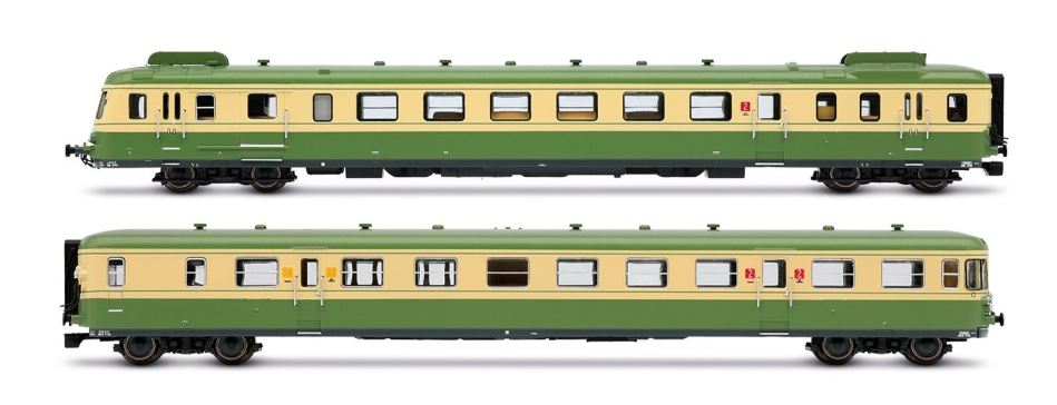 Description | coffret automotrice diesel RGP2 en version modernisée verte et beige | |