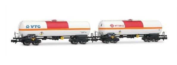 HN6634 : Coffret de deux wagons citerne à bogies, marquages VTG et