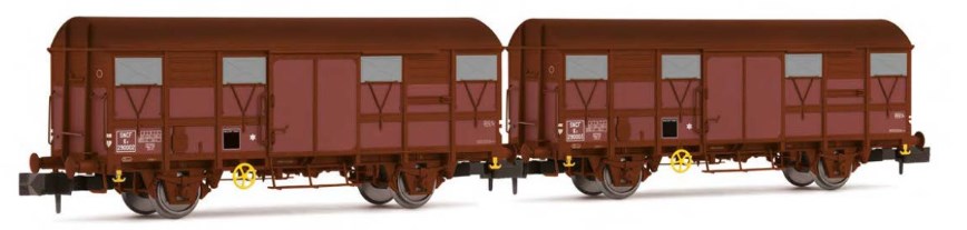 HN6712 : Coffret de deux wagons bâches courts à essieux de type K70, marquage