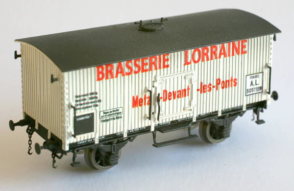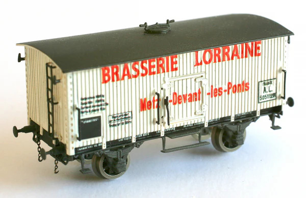 ALSACE LORRAINE Marquage BRASSERIE LORRAINE Metz-Devant-Les-Ponts Wagon en laiton Longueur : 50 mm |