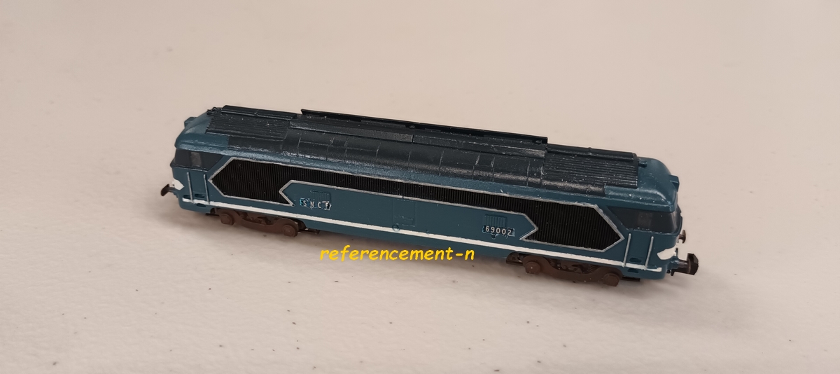 | Description | Locomotive type CC 65000 surnommée "Sous-marins" en desonde livrée (post années 60) | ||