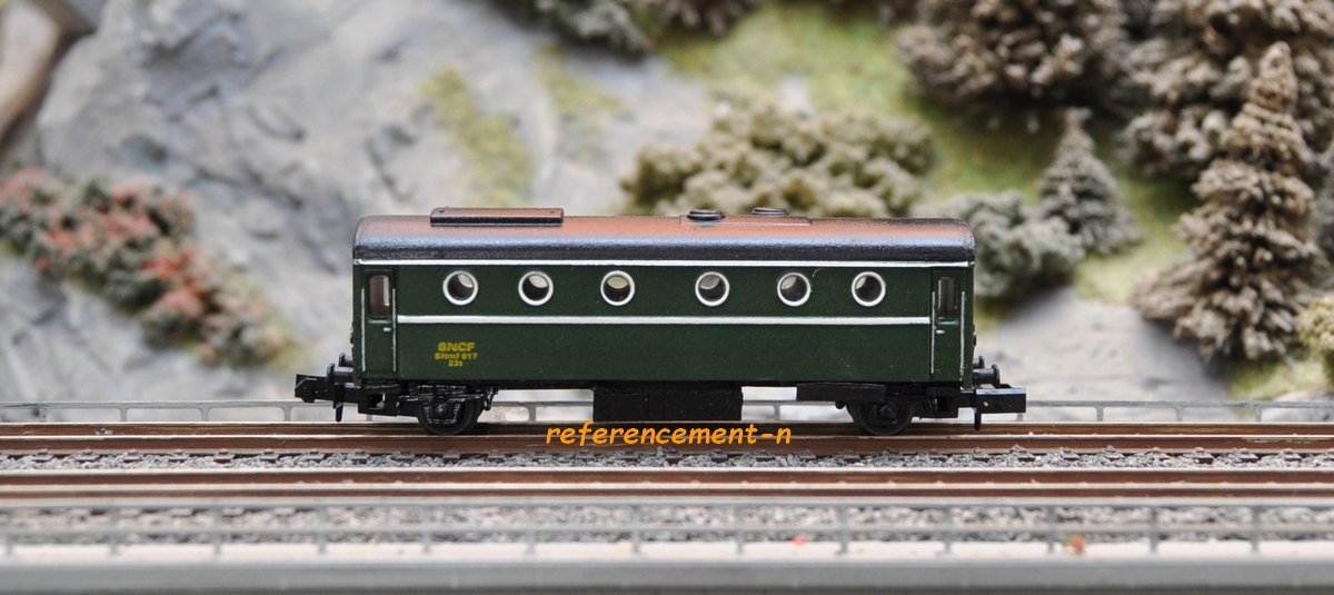 Livrée brun foncé et toit noir Wagon réalisé antérieurement à la sortie du modèle Arnold référencé 4497 en 1994 |