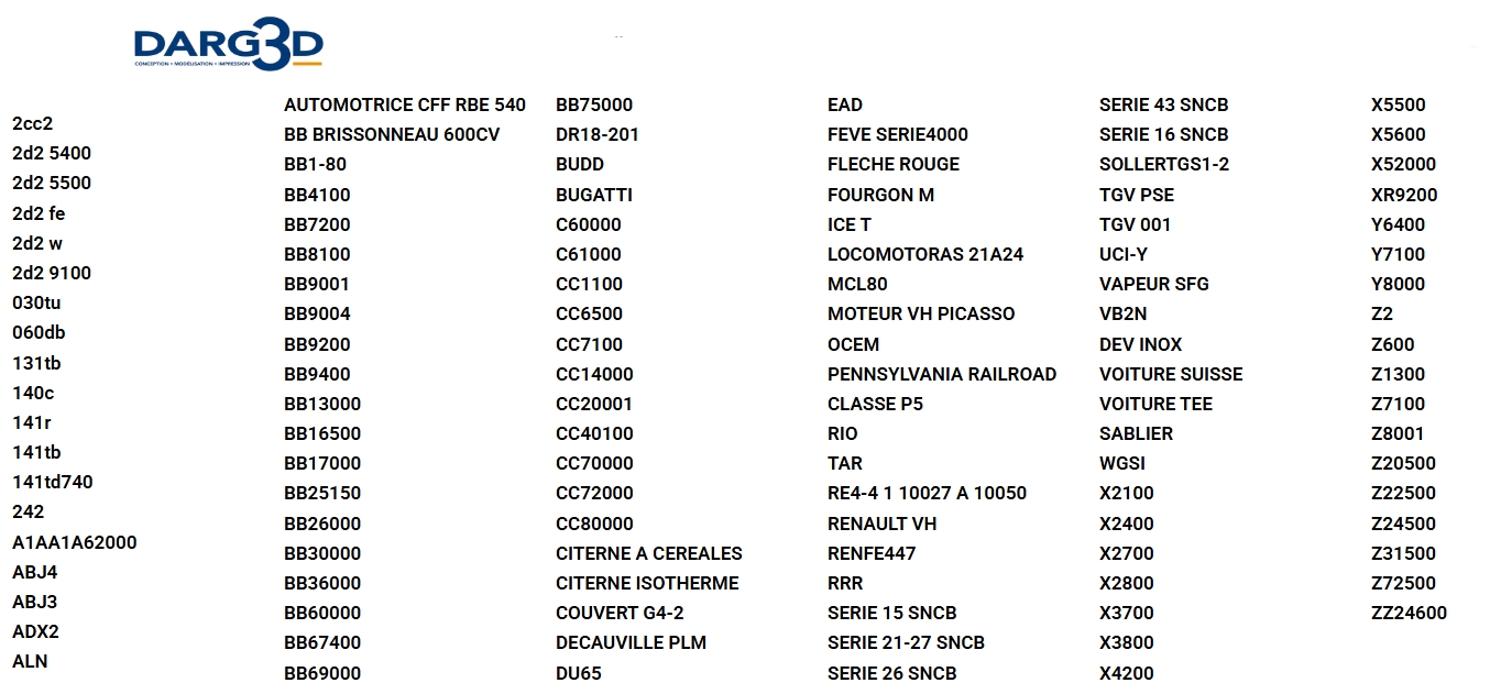 TER Lorraine Caisses en impression 3D peintes montées sur châssis DARG3D Motorisation DARG3D Historique du modèle |