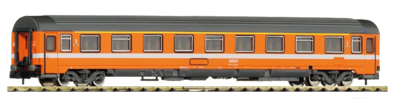 version En fait il s'agit d'une voiture UIC type X allemande prétendue SNCF montée sur bogie Y-24-C non conforme Marquage PARIS EST - FRANKFURT Voiture pouvant recevoir un éclairage intérieur Longueur : 165 mm Annonce dans Rail Miniature Flash N° 146 de mars 1975 Présentation Rail Miniature Flash N° 152 d'octobre 1975 Présentation Loco Revue N° 364 de septembre 1975 |