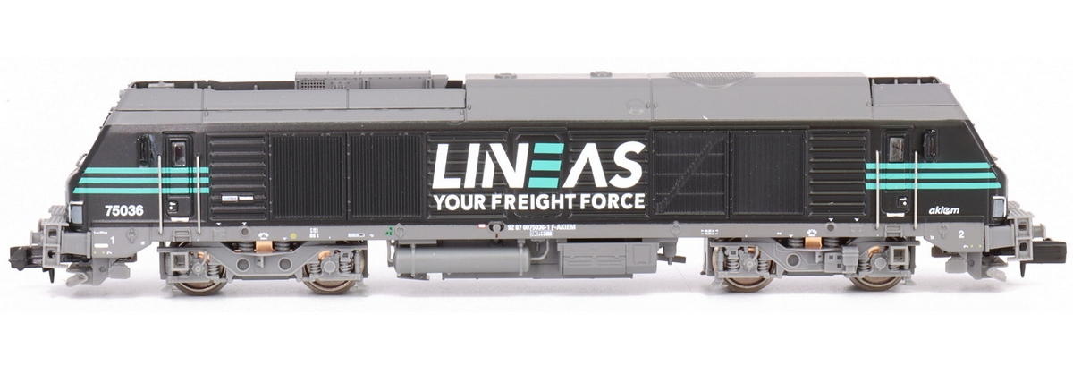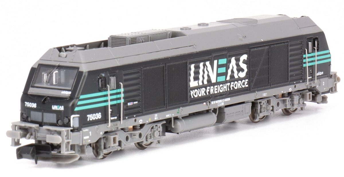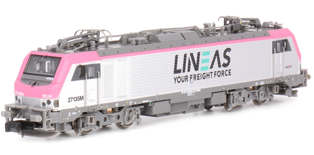 Description | Loco diesel Alstom Siemens Prima type BB 27000 livrée LINEAS grise et rose | ||
