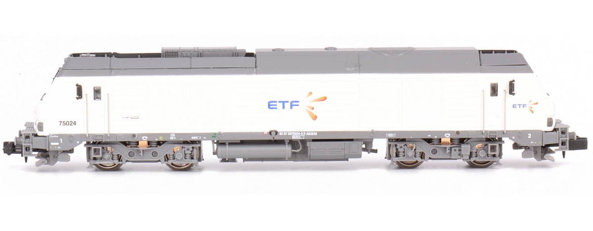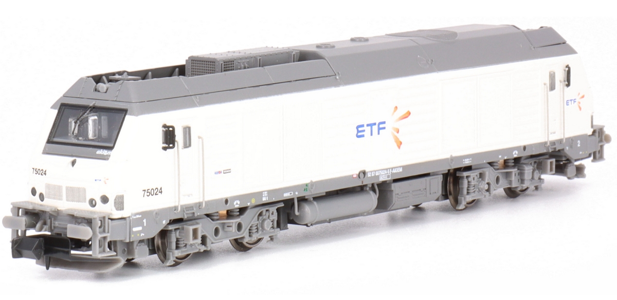 Description | Loco diesel Alstom Siemens Prima type BB 75000 livrée ETF grise et blanche | ||