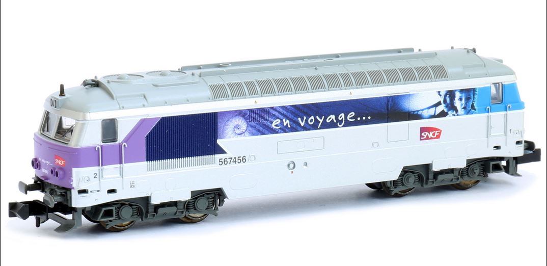 avec bande orange de ceinture de caisse vers 1994 Volant d'inertie, 4 essieux moteurs, bandages d'adhérence Inversion des feux avants et arrières par leds (rouges et blancs) Version digitale sonorisée Eclairage de la cabine en digital Attelages court à élongation Prise de courant par les roues ou le pantographe Longueur : 101 mm Annonce dans le catalogue nouveautés de janvier 2023 Annonce dans Loco Revue N° 908 de mars 2023 Annonce dans Rail Miniature Flash N° 665 de mars/avril 2023 Historique du modèle réel |