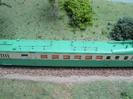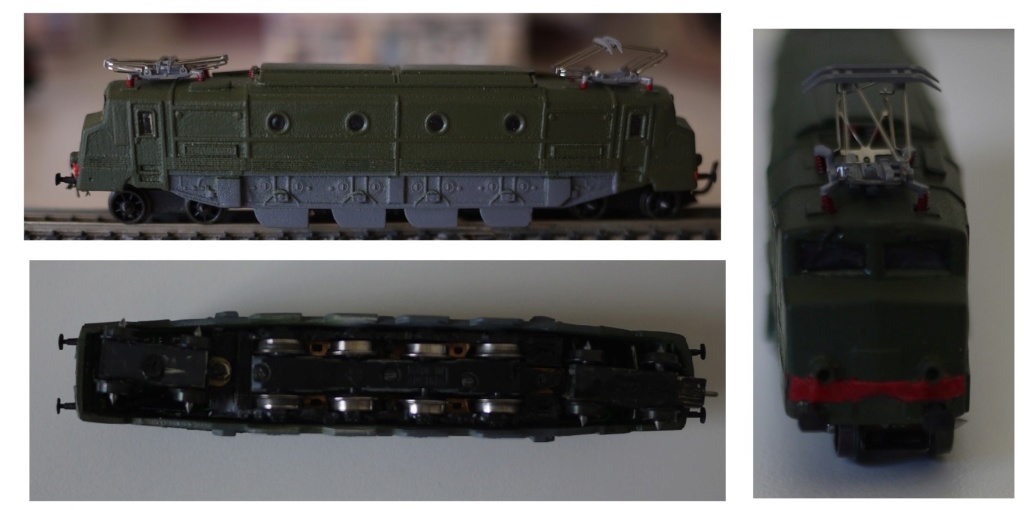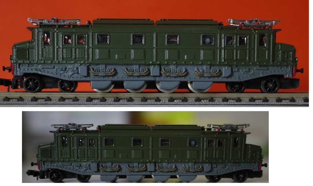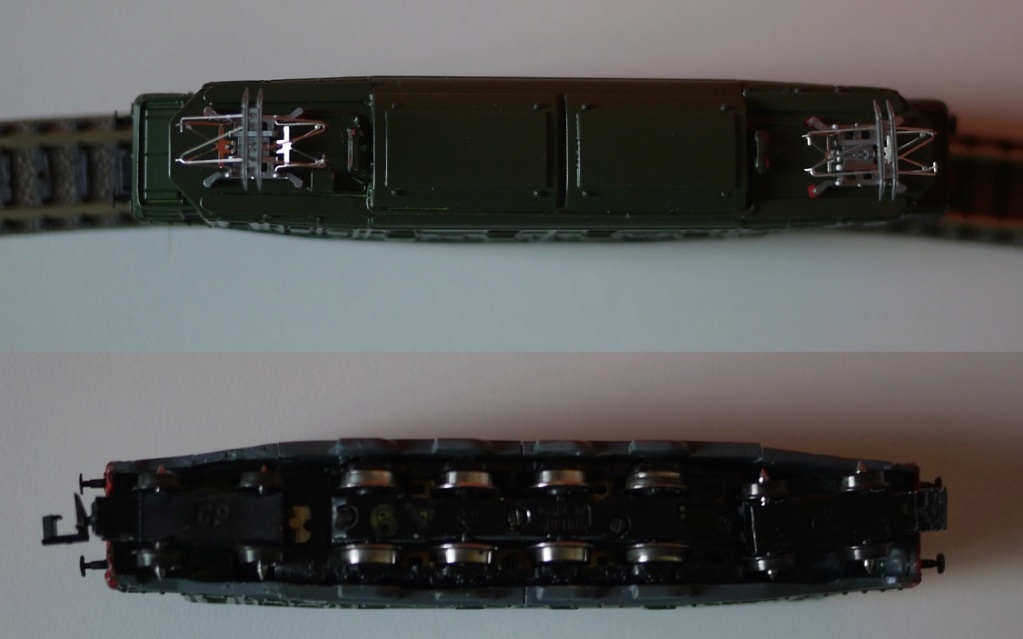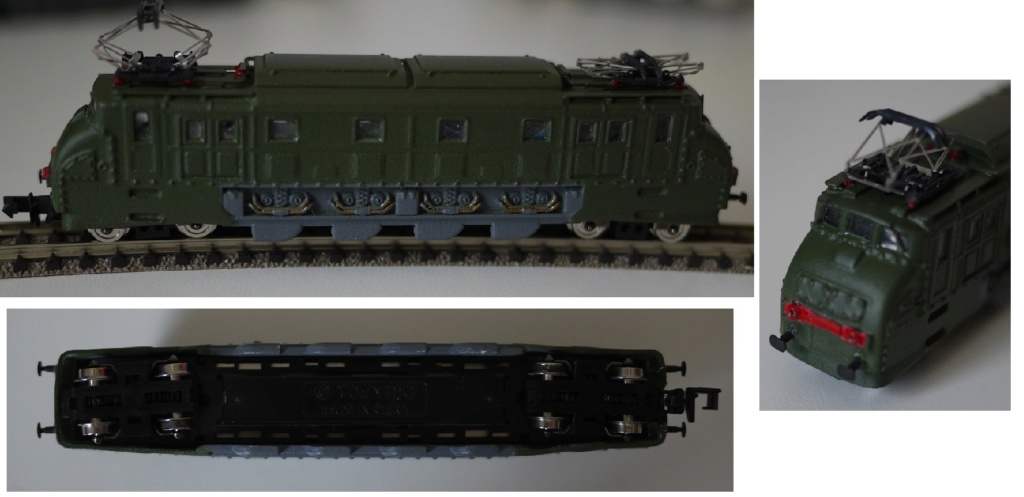 Livrée d'origine bicolore Motorisation par châssis Tomix TM-06 R avec faux essieux centraux) Pantographes Kato Histotique du modèle réel |