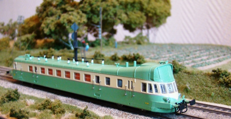 reffroidissement sont situés sous les baies vitrées des baces frontales Livrée bleue et gris clair du réseau PLM Réalisée sur la base de deux autorails ABJ Mabar Modèle unique Historique du modèle réel |