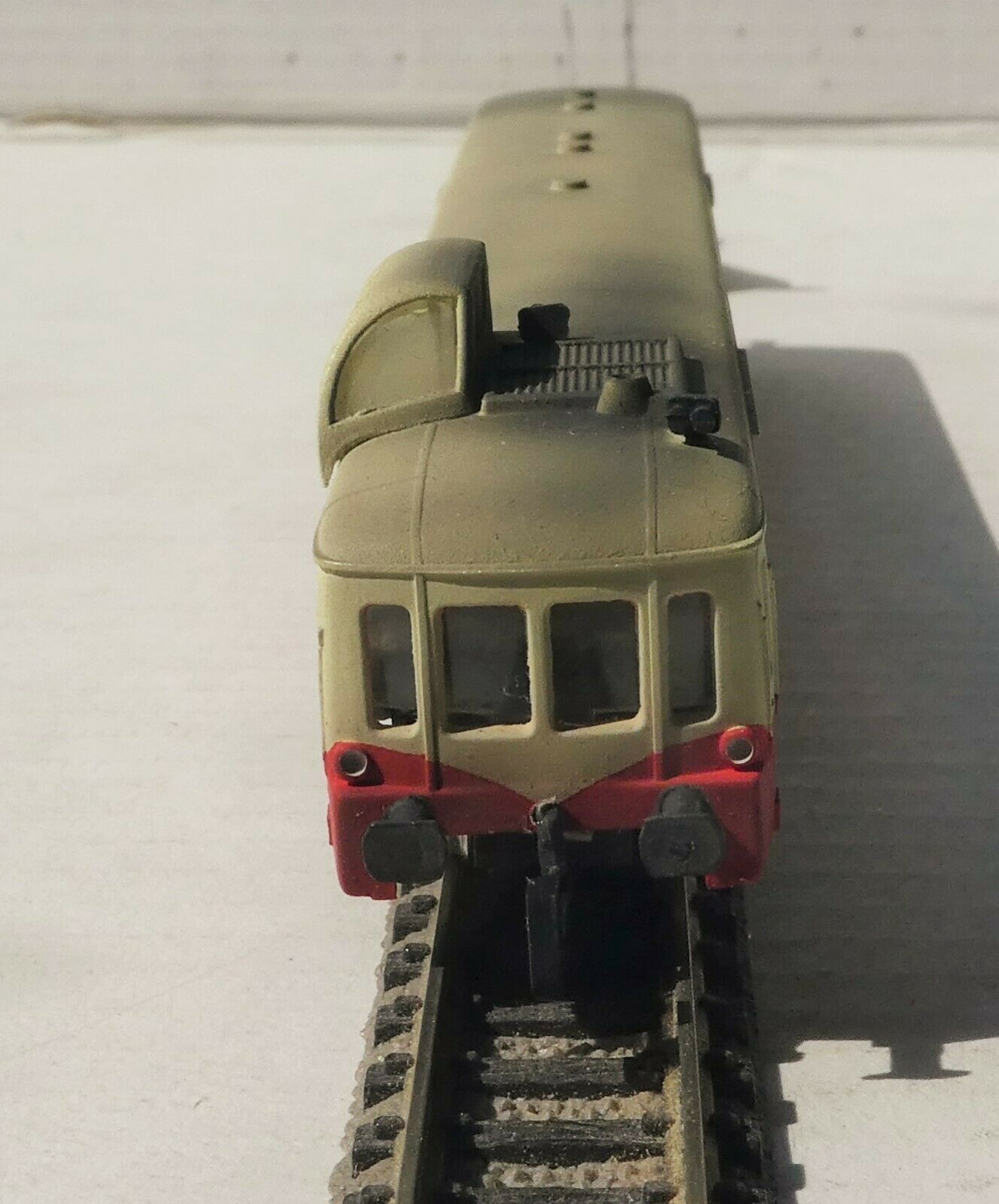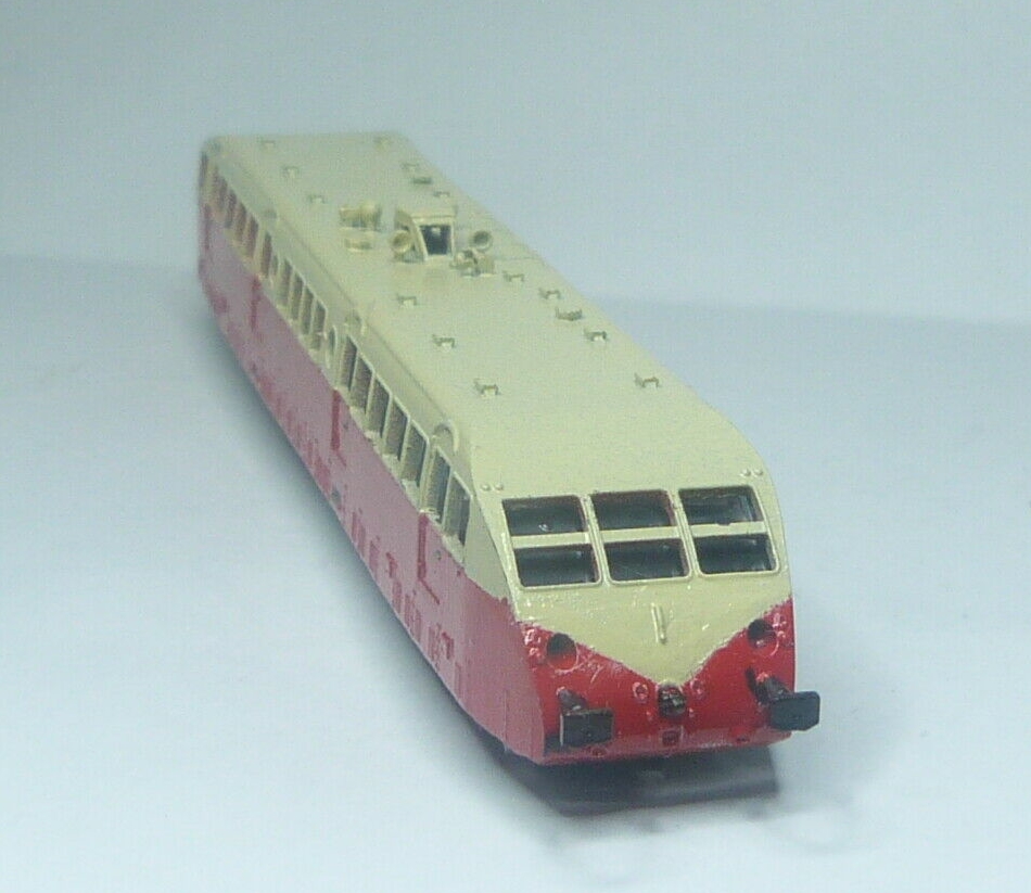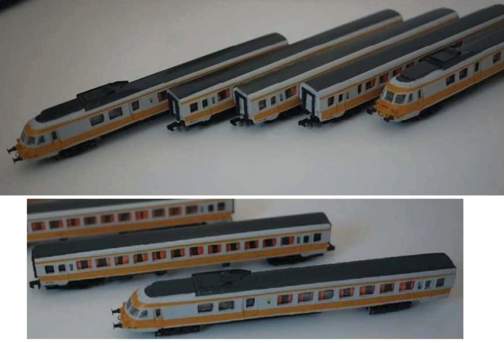 Livrée gris béton et orange Rames composées de deux motrices motorisées par des turbones à gaz simolaires à celles équipant les hélicoptères Alouette encadrant trois voitures Historique du modèle réel |